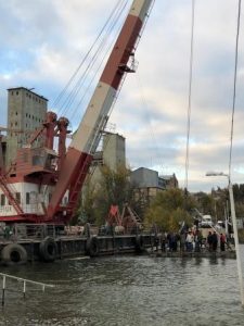 В общем, спасатели оказались на высоте, чего, наверное, нельзя сказать об администрации города. Уже сутки на работах по ликвидации последствий затопления моста пытаются работать различные привлечённые ведомства. Но толку пока не видно. Затопленная часть понтонов пока под водой. Попытки откачать воду из плавучих секций ни к чему не приводят.