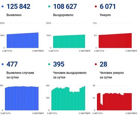Всего же, с начала пандемии, по информации территориального управления Роспотребнадзора, на утро 3 сентября общее число заболевших в регионе достигло 125842 человек.