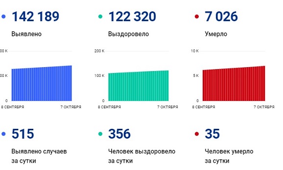 Всего же, с начала пандемии, по информации территориального управления Роспотребнадзора, на утро 7 октября общее число заболевших в регионе достигло 142189 человек.