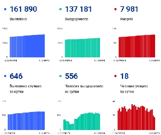 Всего же, с начала пандемии, по информации территориального управления Роспотребнадзора, на утро 9 ноября общее число заболевших в регионе достигло 161890 человек.