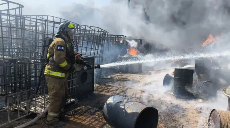 В Мясниковском районе Ростовской области пожарные МЧС России локализовали крупный пожар на складе горюче-смазочных материалов.
