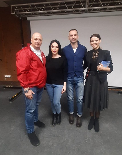 На фото: руководитель регионального поискового объединения «Миус-Фронт» Андрей Кудряков, общественный деятель, руководитель волонтерского движения «Счастливое детство» Алёна Ленская, актеры театра им.М.Горького Анастасия Голотвина и Евгений Климанов.