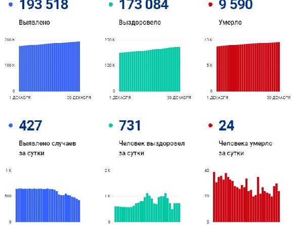 Всего же, с начала пандемии, по информации территориального управления Роспотребнадзора, на утро 30 декабря общее число заболевших в регионе достигло 193518 человек.
