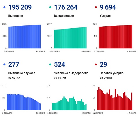Всего же, с начала пандемии, по информации территориального управления Роспотребнадзора, на утро 4 января общее число заболевших в регионе достигло 195209 человек.