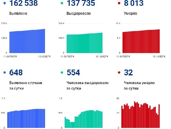 Всего же, с начала пандемии, по информации территориального управления Роспотребнадзора, на утро 10 ноября общее число заболевших в регионе достигло 162538 человек.