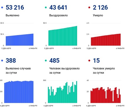 По данным регионального управления Роспотребнадзора за 3 января в Ростовской области выявлено 388 новых случая инфицирования COVID-19. Всего же, с начала пандемии на утро 4 января общее число заболевших в регионе составило 53216.